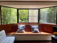 - 〇大きな窓から差し込む木漏れ日と、森の緑に囲まれたプライベート感あふれる空間