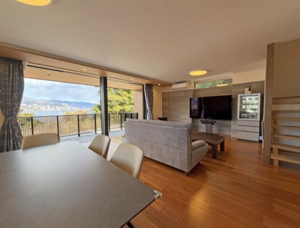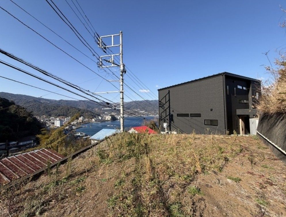 - 〇JR伊東線「網代」駅より車で約4分。アプローチの斜路を上った先に佇む、高台の邸宅のご紹介です。