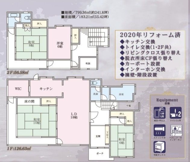 ■2020年リフォーム済み ・キッチン交換 ・トイレ交換(1・2F共) ・リビングクロス張り替え ・脱衣所床CF張り替え ・カーポート設置 ・インターホン交換 ・擁壁・階段設置 |
