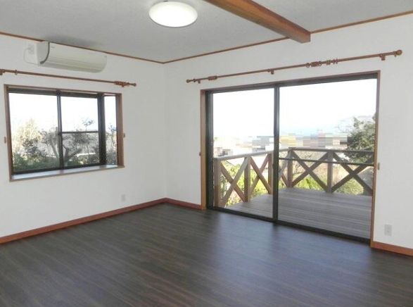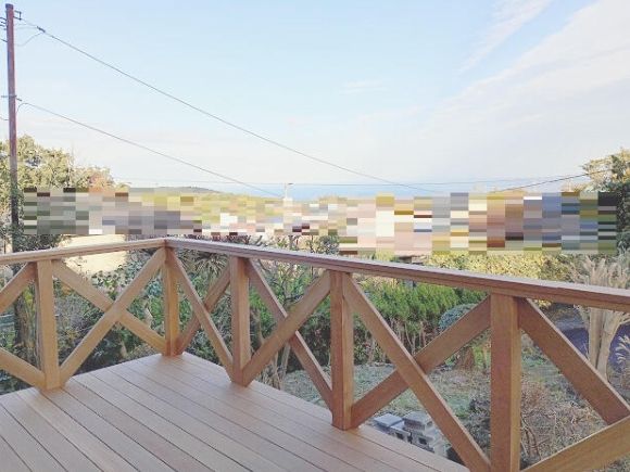 - 〇ウッドデッキからも海景色を楽しめる