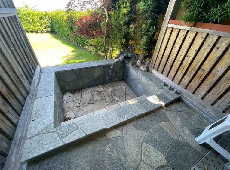 広々とした庭を備え、敷地内では露天風呂で温泉を楽しむことができる贅沢な住環境。