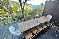 1階には広々としたウッドデッキがあり、大人数でのBBQなども楽しめます。