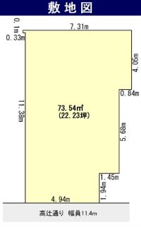 一方 南側 公道(高辻通:幅員約11m)に約4.8m接する |