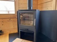 室内には薪ストーブが設置されており、