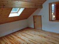 玄関からのアクセスも良好です。天窓はVelux社製で、自然光が優しく差し込む心地よい空間となっています。