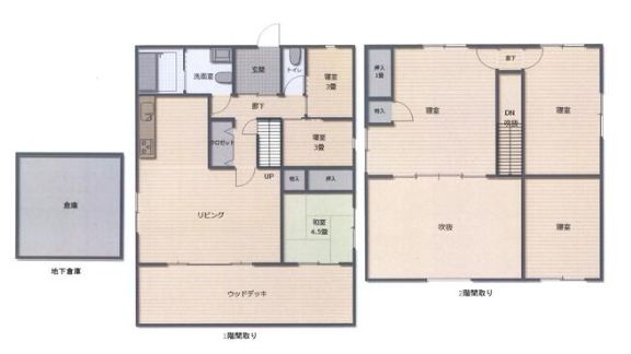 | 設備 | 上水道 電気 個別LPG 浄化槽 IHコンロ システムキッチン 独立洗面台 シャワー 温水洗浄便座 トイレ2カ所 浴室に窓 バス1坪以上 追焚き機能 薪ストーブ 東屋 開放的なリビング天井高 ウッドデッキ 地下倉庫 隣接建物距離2m以上 | ||