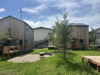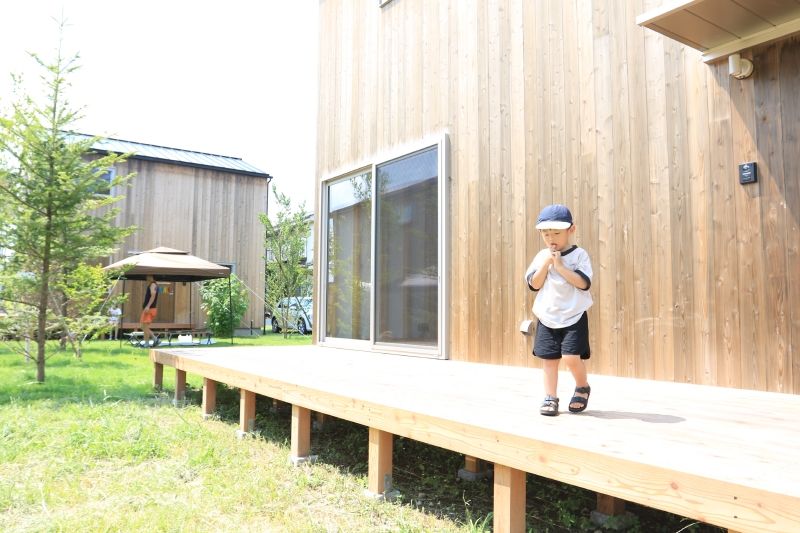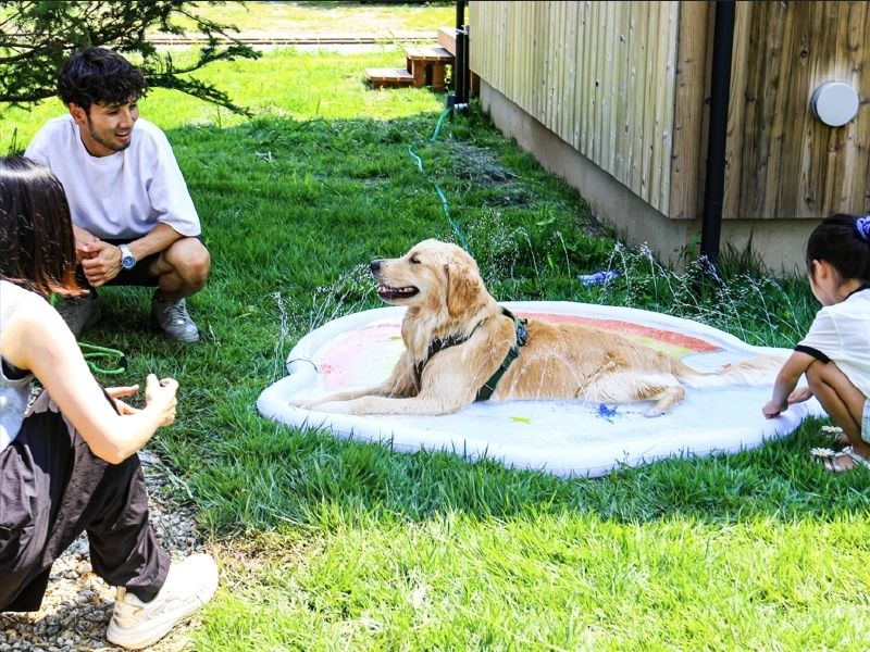 敷地内はフェンス付きで、愛犬が安心して遊べるドッグスペースとしても利用可能。庭の中央にはアウトドアキッチンがあり、居住者同士でBBQなども楽しめます。