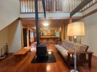 2階には薪ストーブを備えた吹き抜けリビングが広がり、大理石のバーカウンターやIHキッチン、パントリーなど、贅沢な設備を完備。