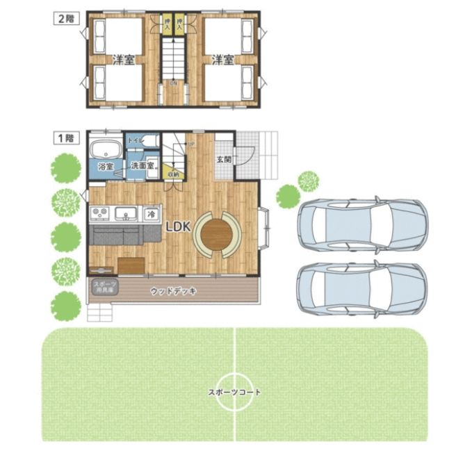 設備 | 浄化槽 温水洗浄便座 浴室に窓あり IHクッキングヒーター 2口コンロ 全居室収納 クローゼット 全居室フローリング 庭 ルーフバルコニー ウッドデッキ BBQ スポーツコート | ||
