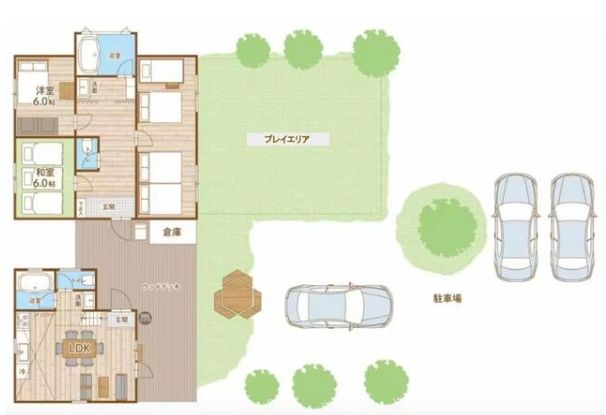 設備 | 上水道 プロパンガス 浄化槽 IHクッキングヒーター トイレ2カ所 浴室2カ所 ロフト ウッドデッキ ルーフバルコニー 駐車スペース3台分以上 広大な庭 ドッグラン | ||