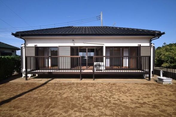 - 広い南庭に面したワイドデッキ付きの平家住宅です。