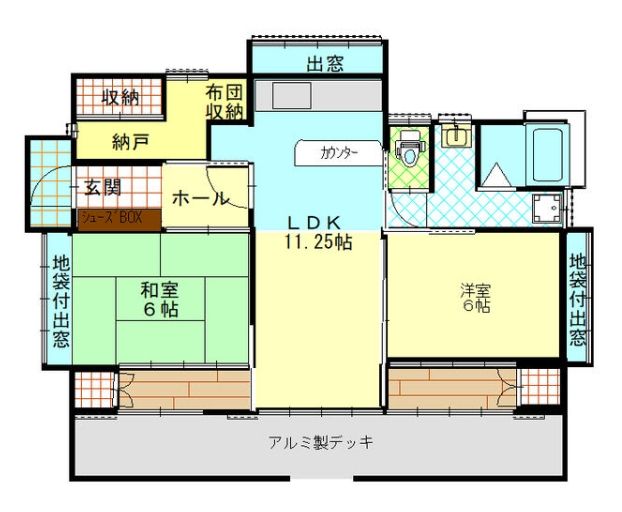 南向きのワイドデッキは、洗濯物を干したり、ゆったりとした時間を過ごしたりと多目的に利用可能。
