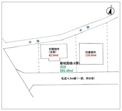 | 土地面積 | (公簿)281.49m2 | 他に私道面積 | ※負担有りm2 |