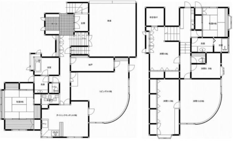 建物は平成3年築の6SLDK+ビルトインガレージ2台分、延床約95坪のゆとりある間取り。