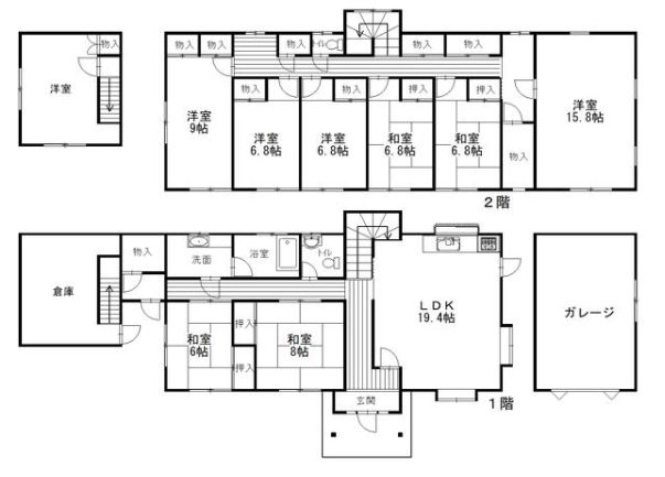 ■主要採光面:南東向き ■未登記の建物(1階は車庫と倉庫、2階は居室)あり。 |