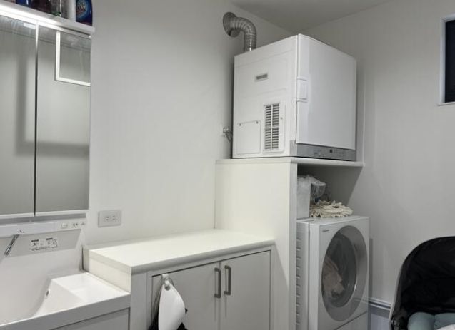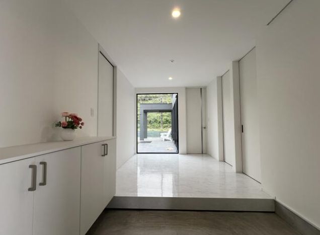 大きな窓から光が差し込む開放的な空間に、白とグレーを基調とした上質な内装が広がり、ホテルライクな住まいを演出しています。