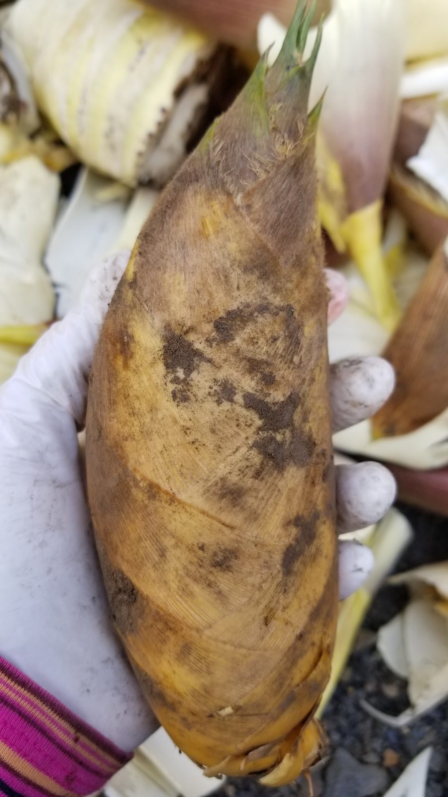 竹の子の成長は大変早いもので、掘らずにそのままにしておくと日に1メートルも大きく成長したとも報告されているとか。確かに、昨日まで地中にあり地面から頭を出てなかったものが気が付くと大人の腰くらいまでに成長し掘れずに残念な思いをしたこともあります。