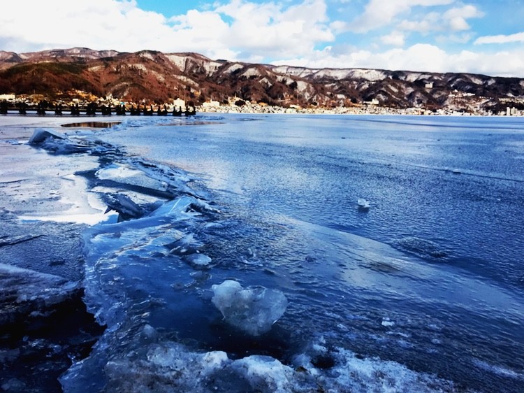 そしてこの厳しい寒さが続き、諏訪湖が全面結氷すると徐々に氷が厚みを増していきます。