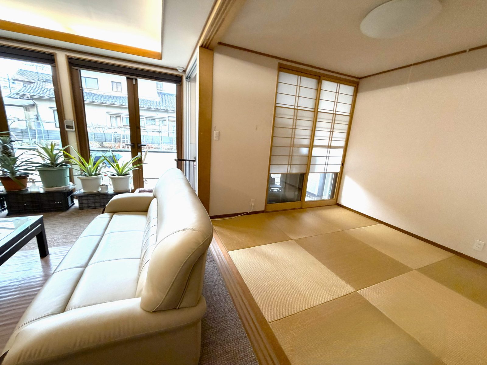 また、リビング隣には和室が続き、雪見障子と畳が織り成すデザインが癒しの空間に。