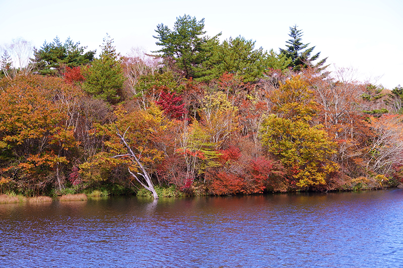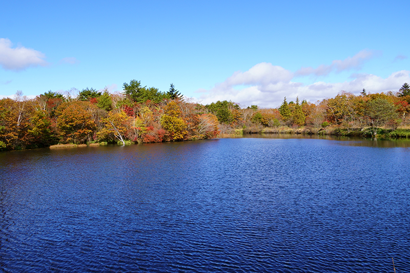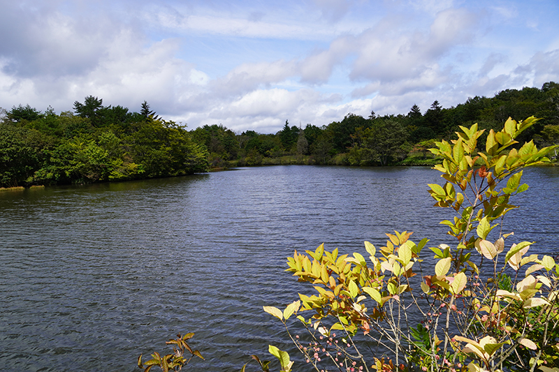 以前は湖の周辺を歩けたのですが、現在は立入禁止になっています。こちらも紅葉はまだまだ先ですね。