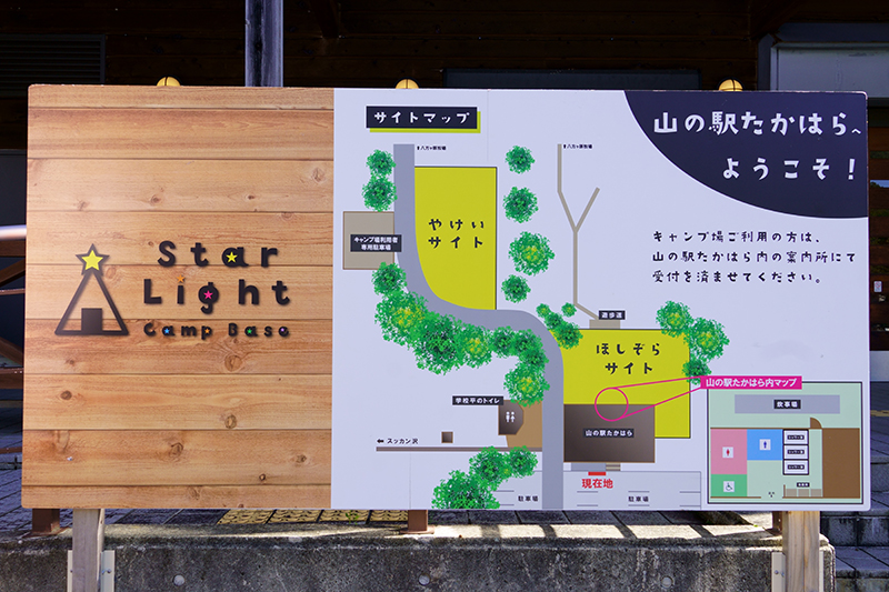 「山の駅たかはら」には、2022年に「Star Light Camp Base」キャンプ場がオープンしました。