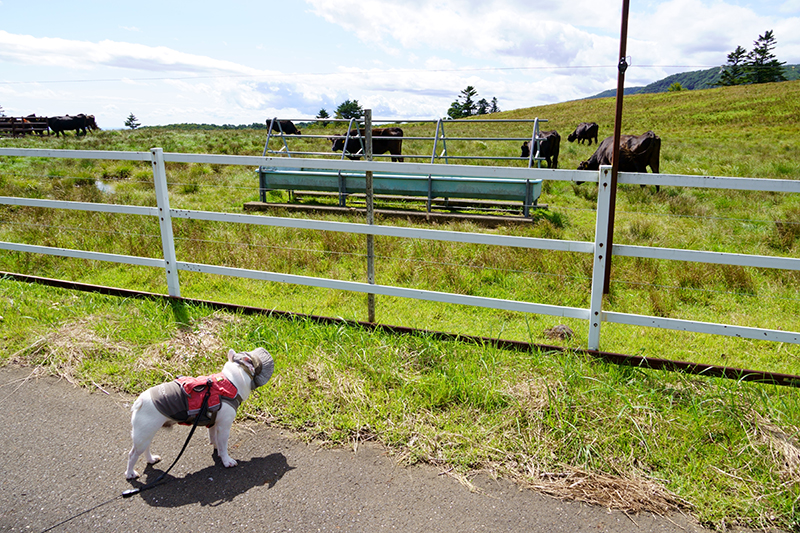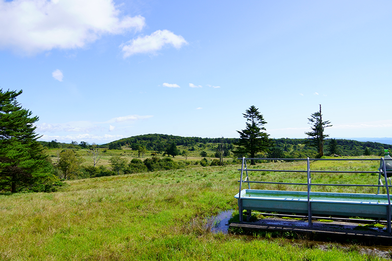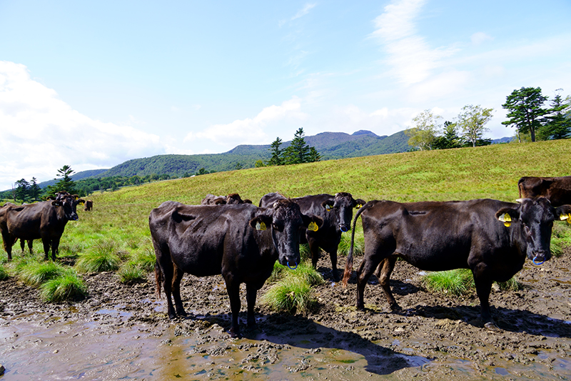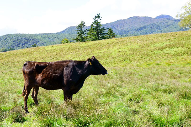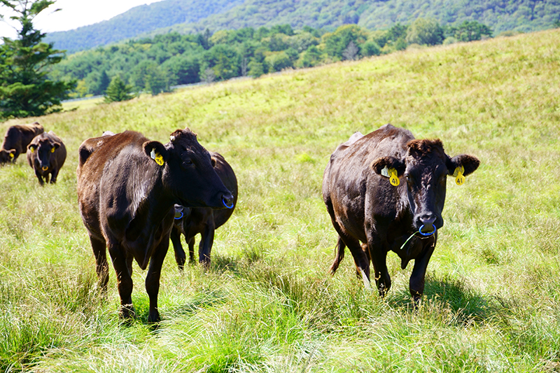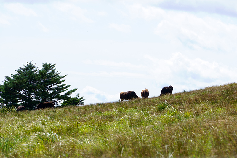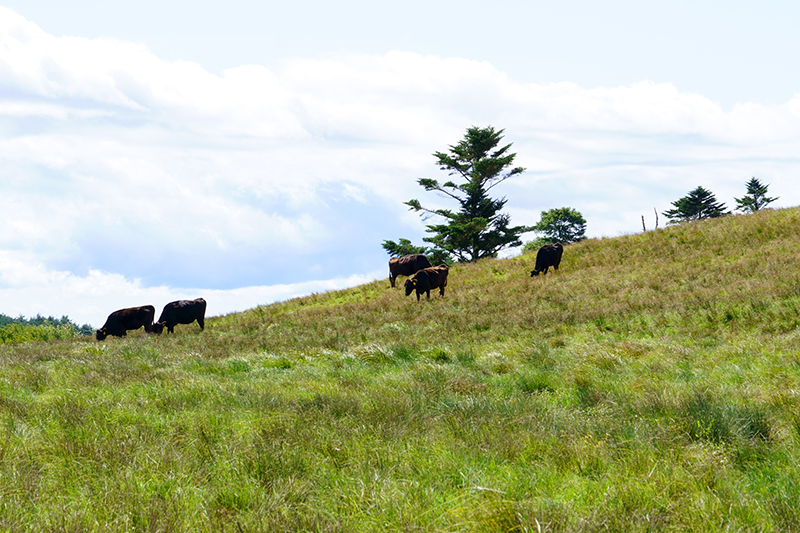 標高が高く夏でも涼しい場所で、6月から10月下旬まで雌牛が放牧されます。雌牛の放牧は、牛の足腰を鍛え、安産を促すために畜産家から委託されているとのことです。