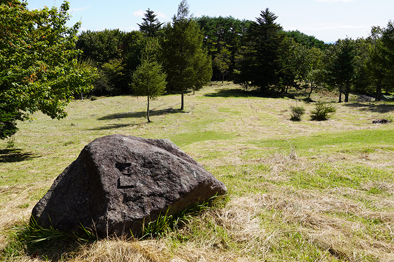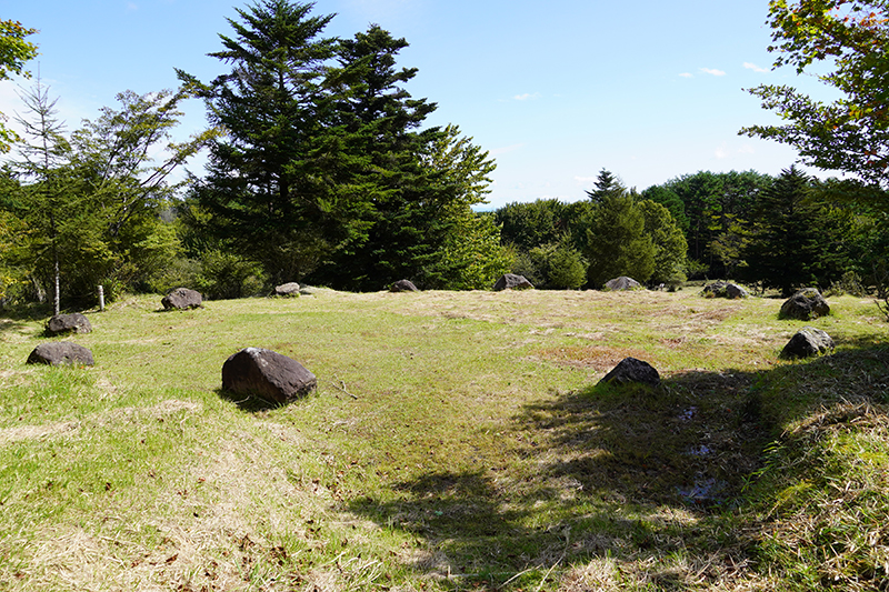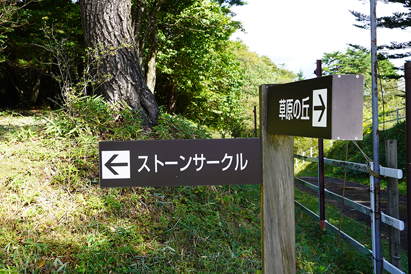標識にあったストーンサークルが見えてきました。大きな石が環状に並べられています。