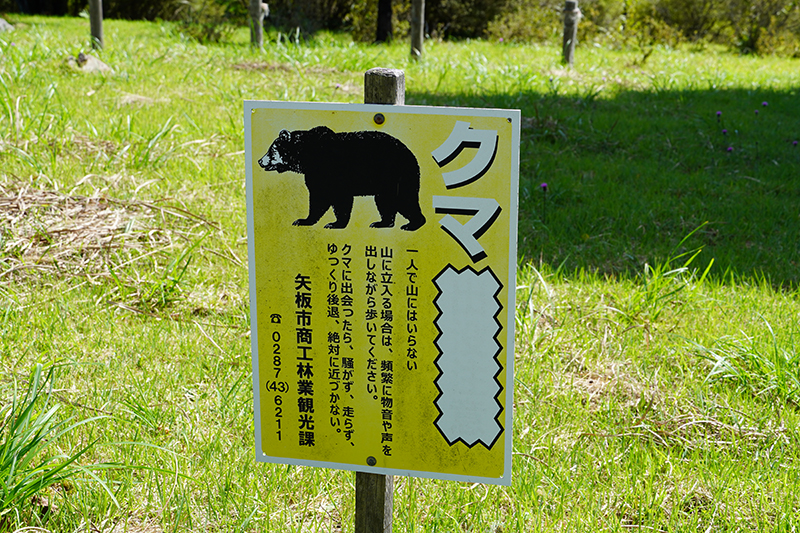 クマ注意の看板も。実りの季節は特に注意が必要ですね。