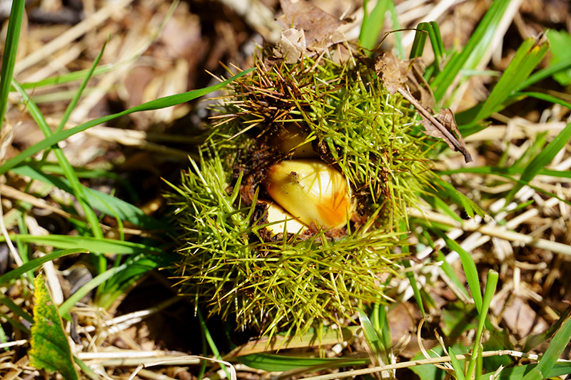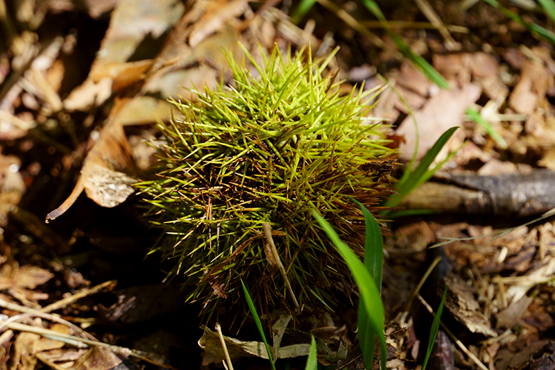 見上げると栗の巨木。