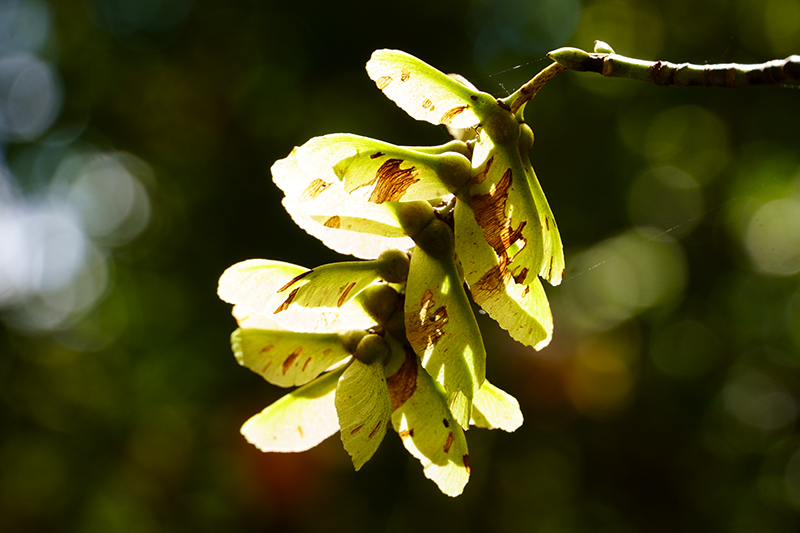 プロペラのような形をした種子は、風に乗り、より遠くへ飛んでいきます。