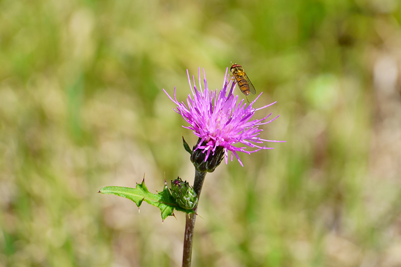 ノアザミは虫たちの人気者。蜜を吸いにたくさんの虫たちが集まっていました。