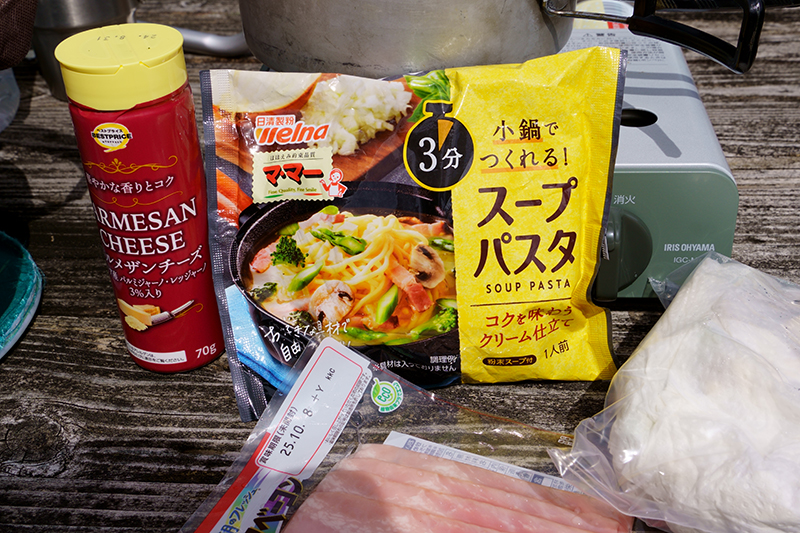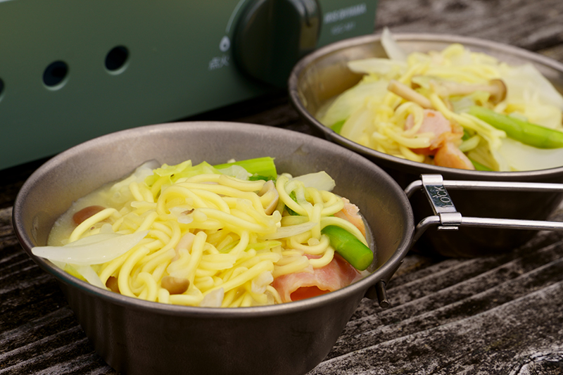 刻んできた野菜とインスタント麺で、スープパスタを作ります。
