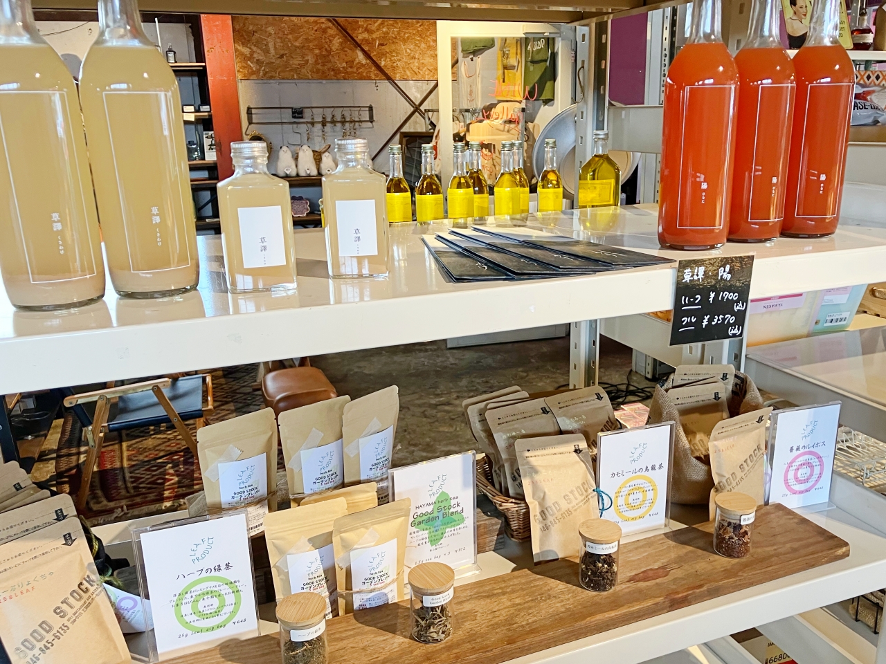 ハーブ緑茶やこだわりのドリンクのほか、調味料やパンケーキミックスなど、食卓をちょっと豊かにしてくれる食品も並んでいました。