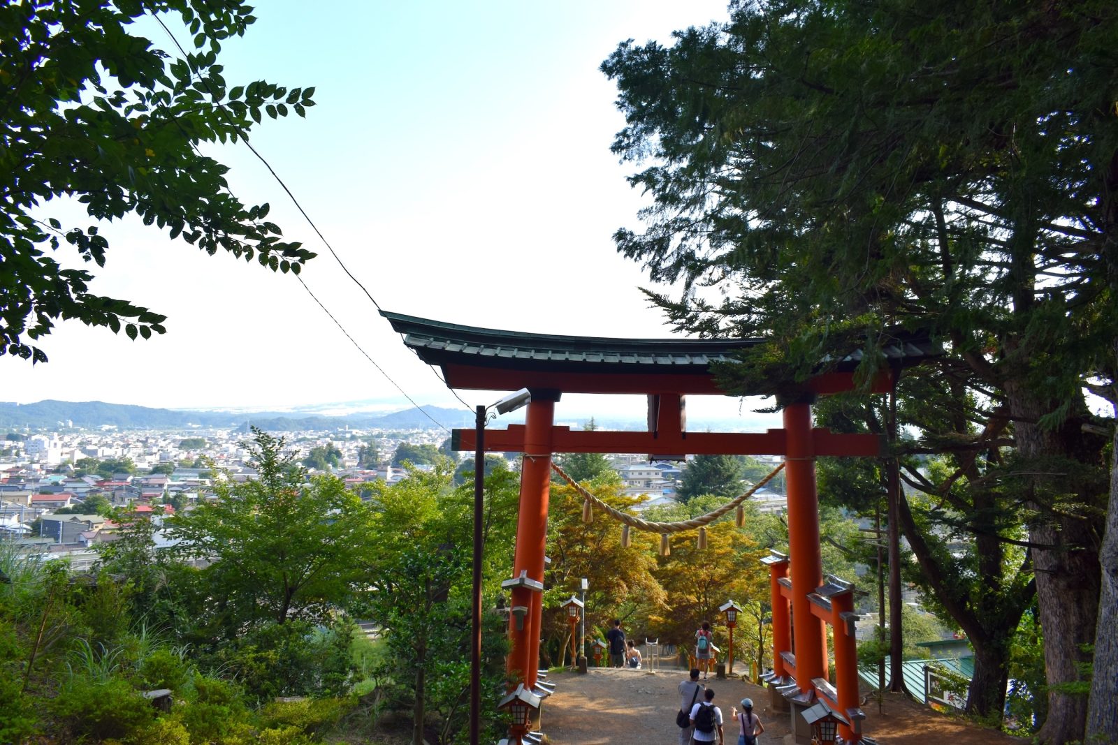 神社は鳥居をくぐってすぐにあるのですが、絶景の富士山が望めるポイントとして知られる五重塔(忠霊塔)までは約400段(※)の「さくや姫階段」を登っていく必要があります。