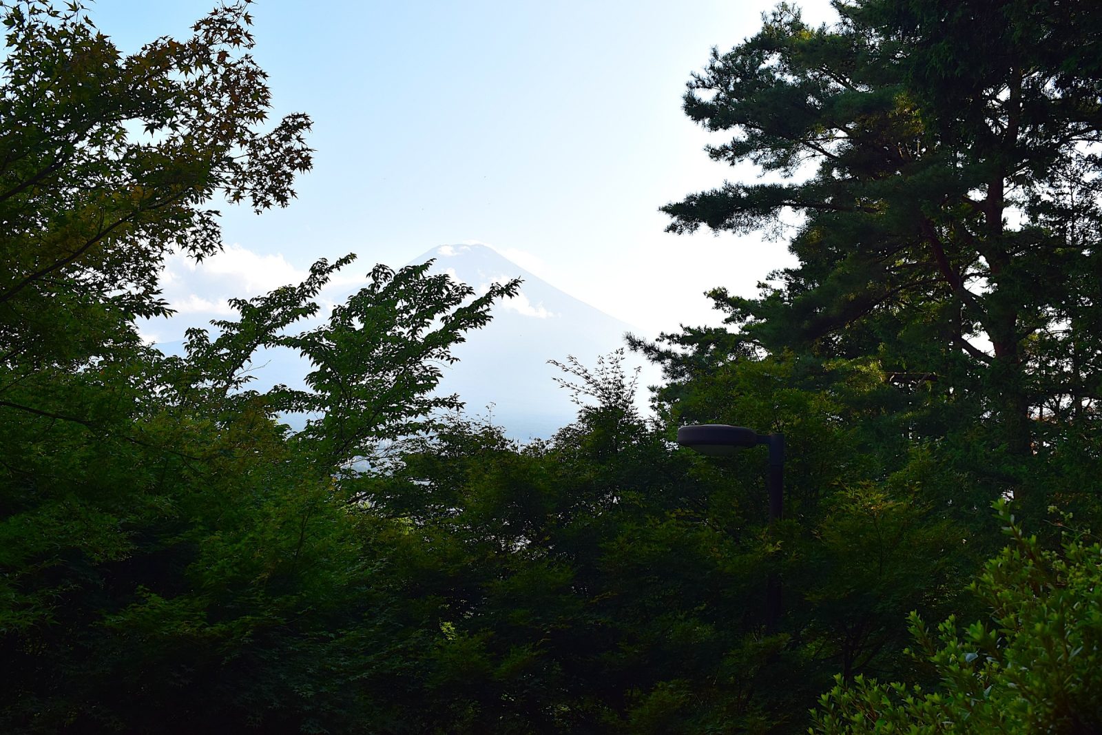 やがて木々の間から富士山の頂上部分が見えてくると、五重塔(忠霊塔)はすぐそこ。