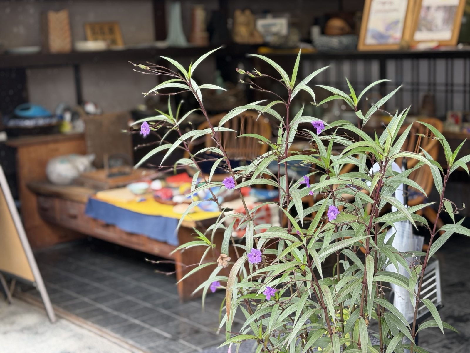 あまから家の軒先。ストーンアートのネコちゃんや鉢植えの雰囲気がとてもステキだった