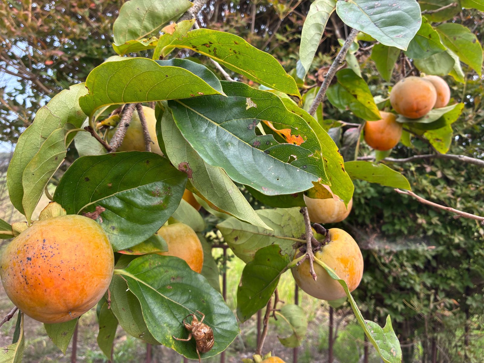 収穫の秋でもあり、庭では柿が色づき始めました。