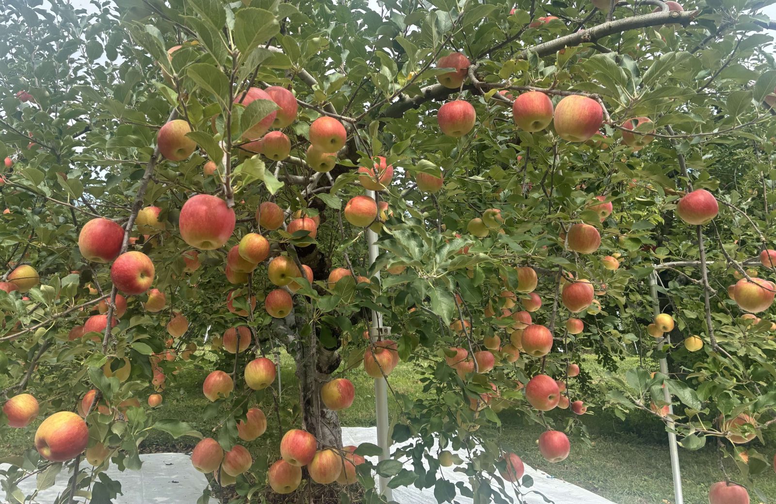 1本の木にたわわに実ったリンゴ。手が届く近さで愛おしいです。