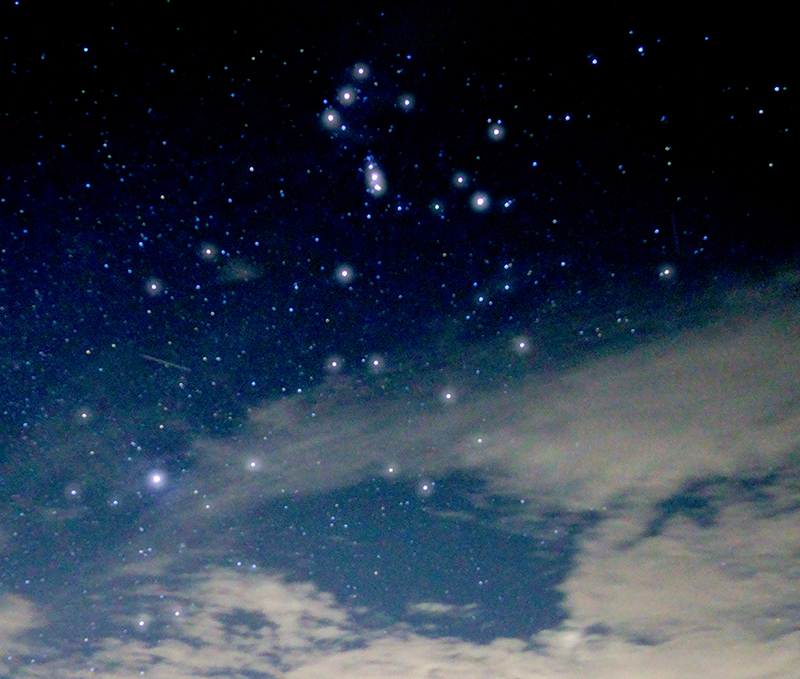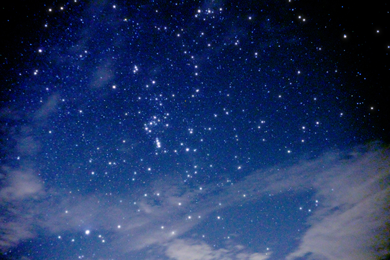 深夜2時に起床して空を見上げると、雲はありましたが合間から星空を見ることができました。眺めていると流れ星も。