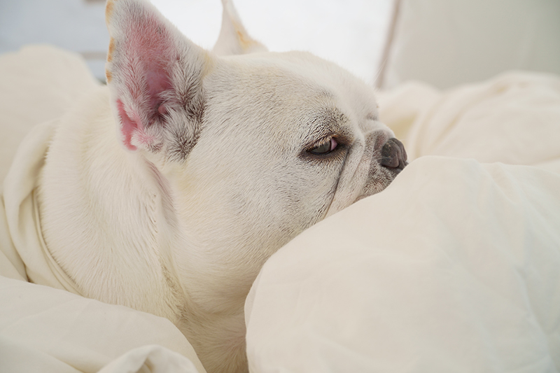 キャンプでも朝寝坊なコポー。まだ眠いよ〜。
