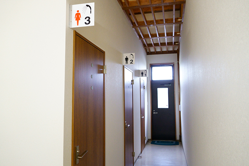 管理棟へ入ると洗面台と男女別れたシャワールームとお手洗いがあります。こちらもとっても綺麗でした。
