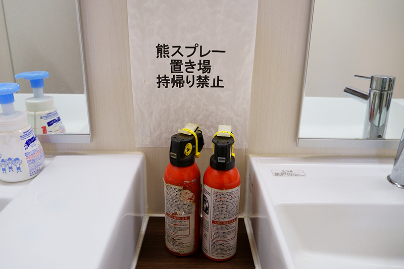 キャンプ場内で熊の目撃情報はないということでしたが、クマよけスプレーも置いてありました。
