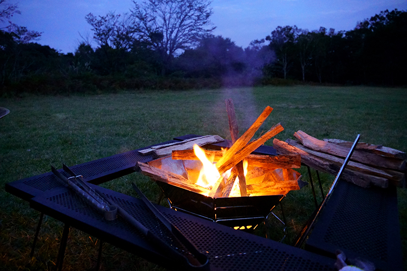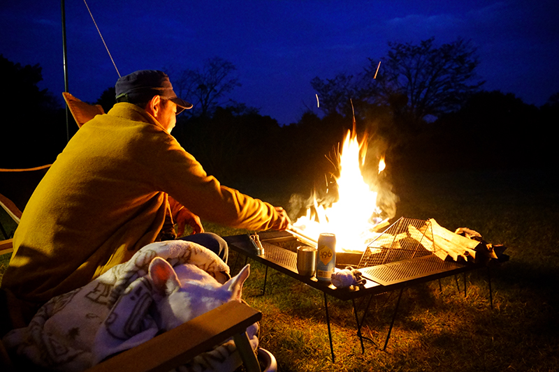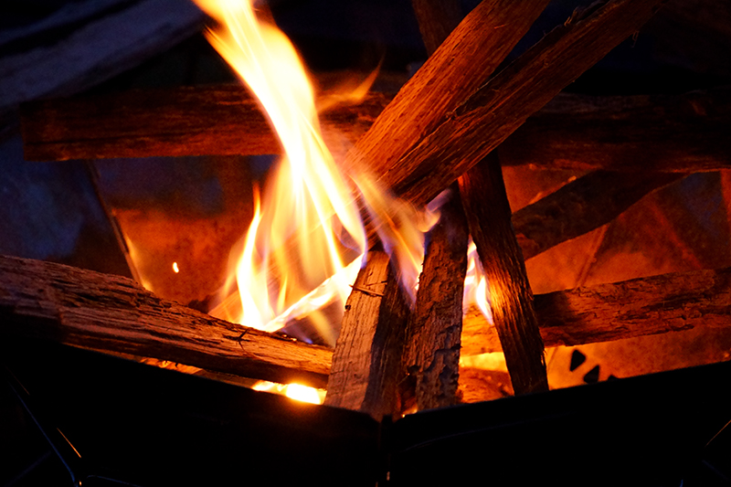 暗くなると少し冷え込んできたので、ここからは焚火タイム。