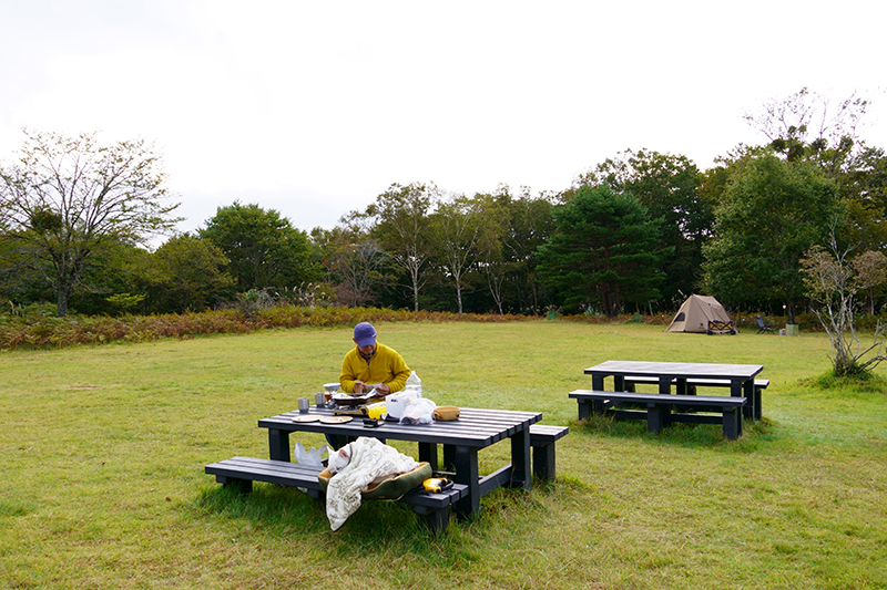 サイト内にテーブルとベンチがあるのも嬉しいですね。