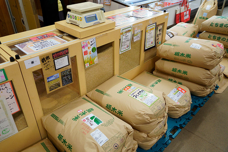 矢板市で収穫された新米も小分けの物から5キロ、30キロと並んでいました。