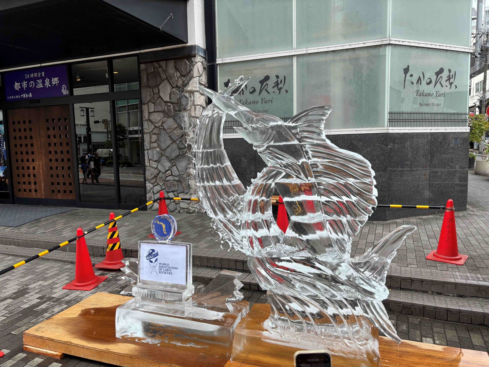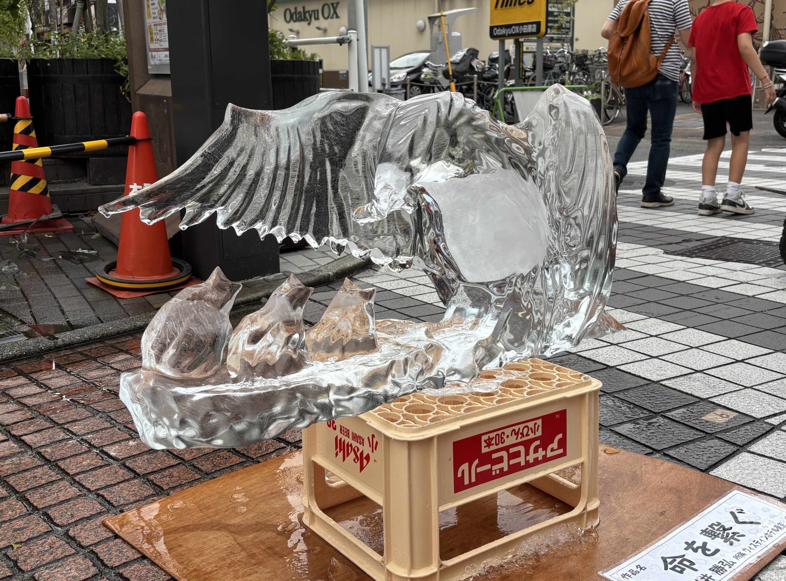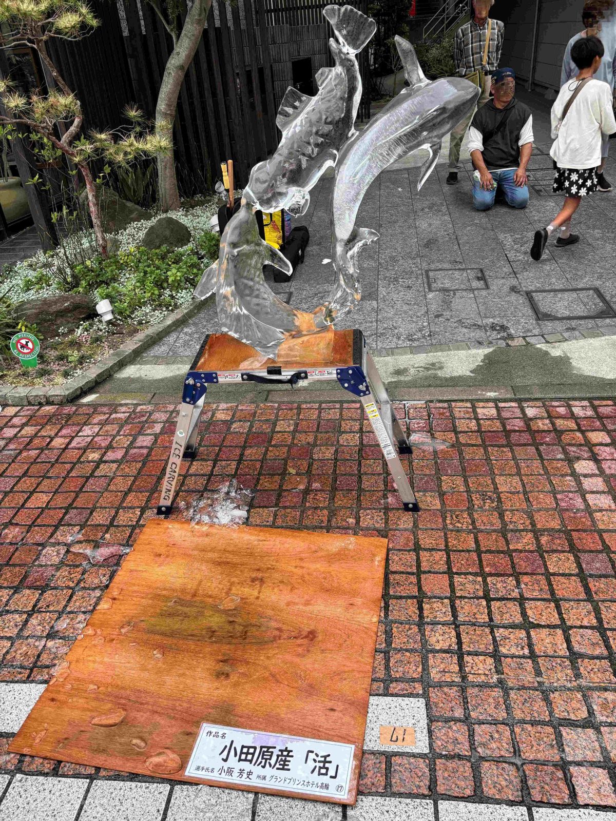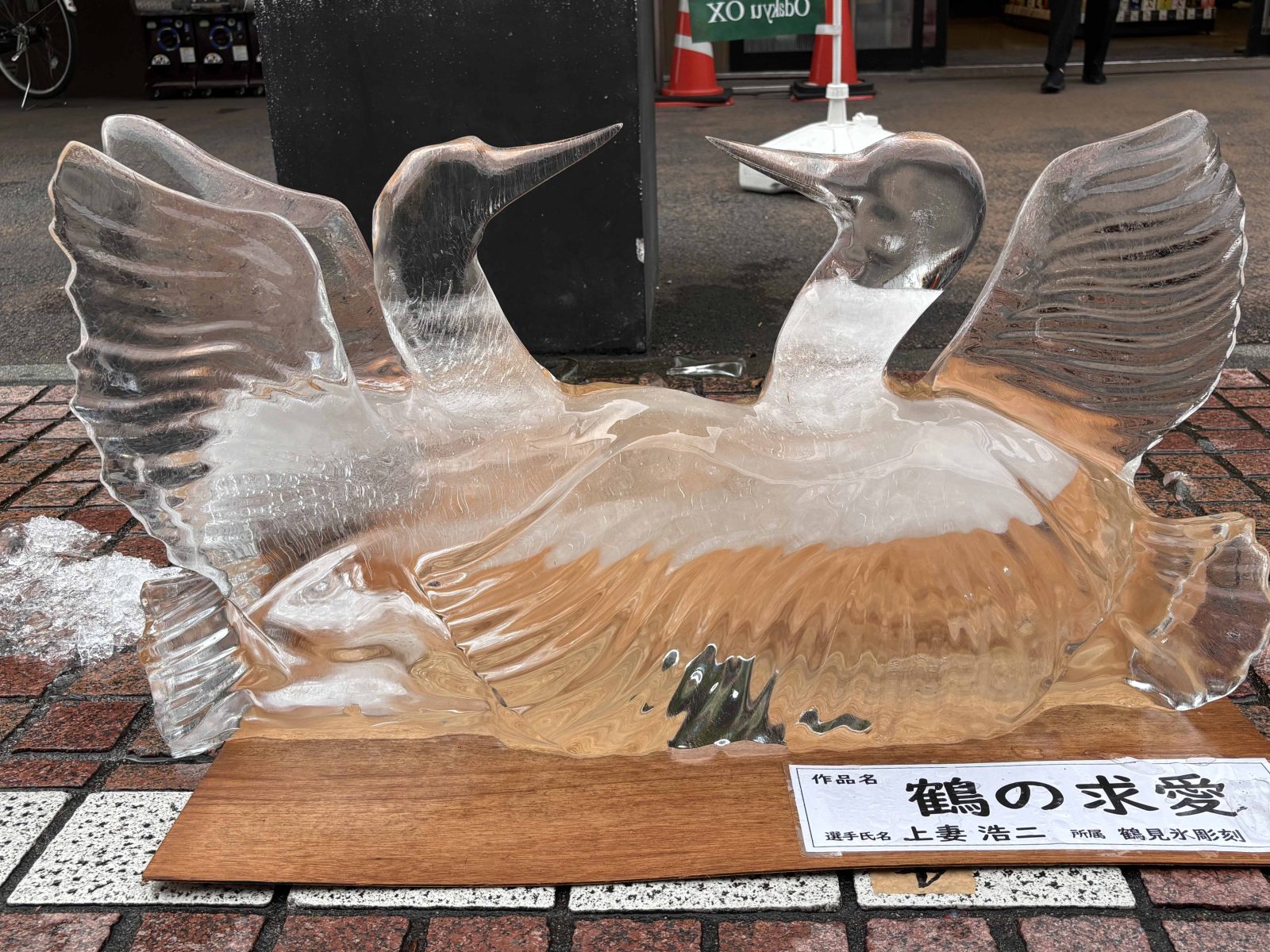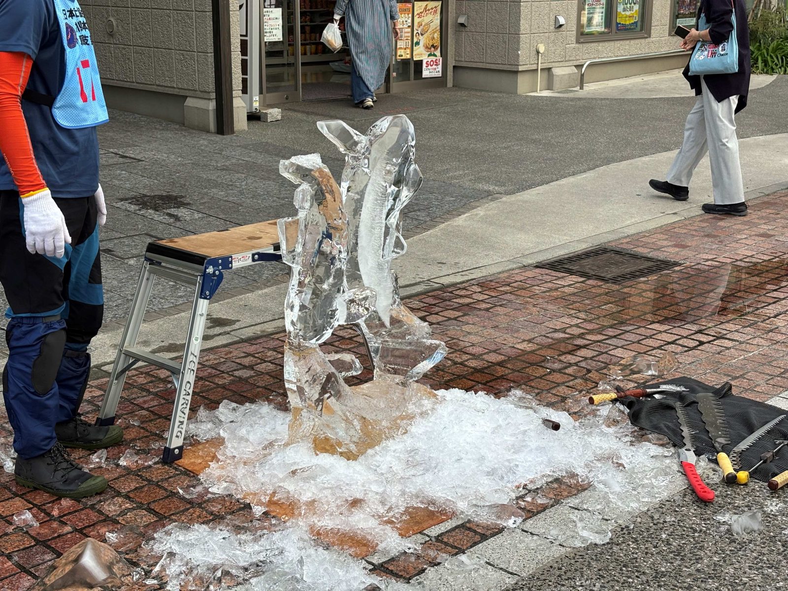 万葉の湯の前には象徴的な氷の彫刻が展示されていました
