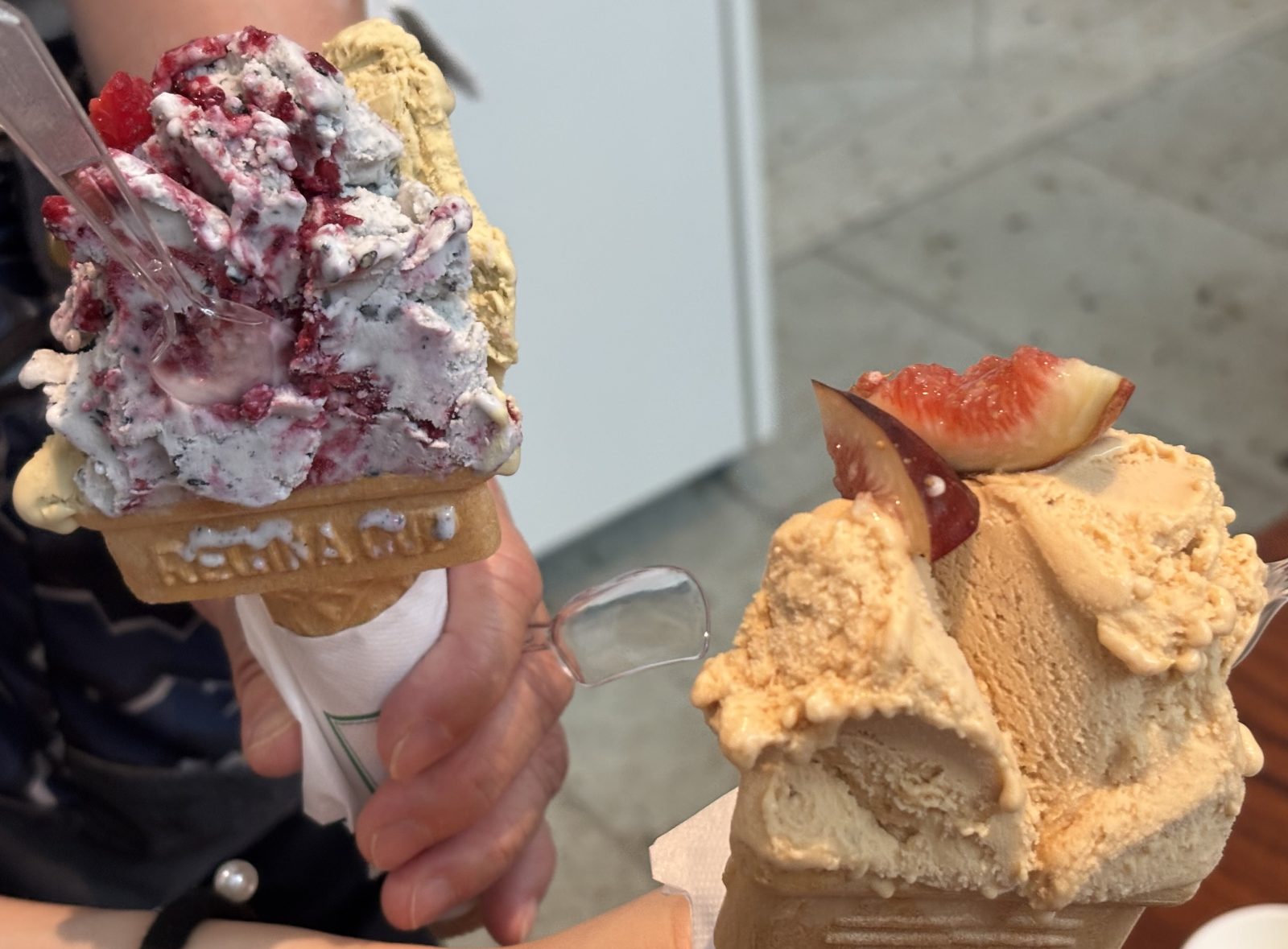 お値段もそこそこ良く大人向けジェラートでピスタチオやキャラメルイチジク、クワトロフォルマッジ、ドライフルーツミックスなど味わってみましたが、BARでお酒と一緒に大人が楽しむ空間といった雰囲気でした。