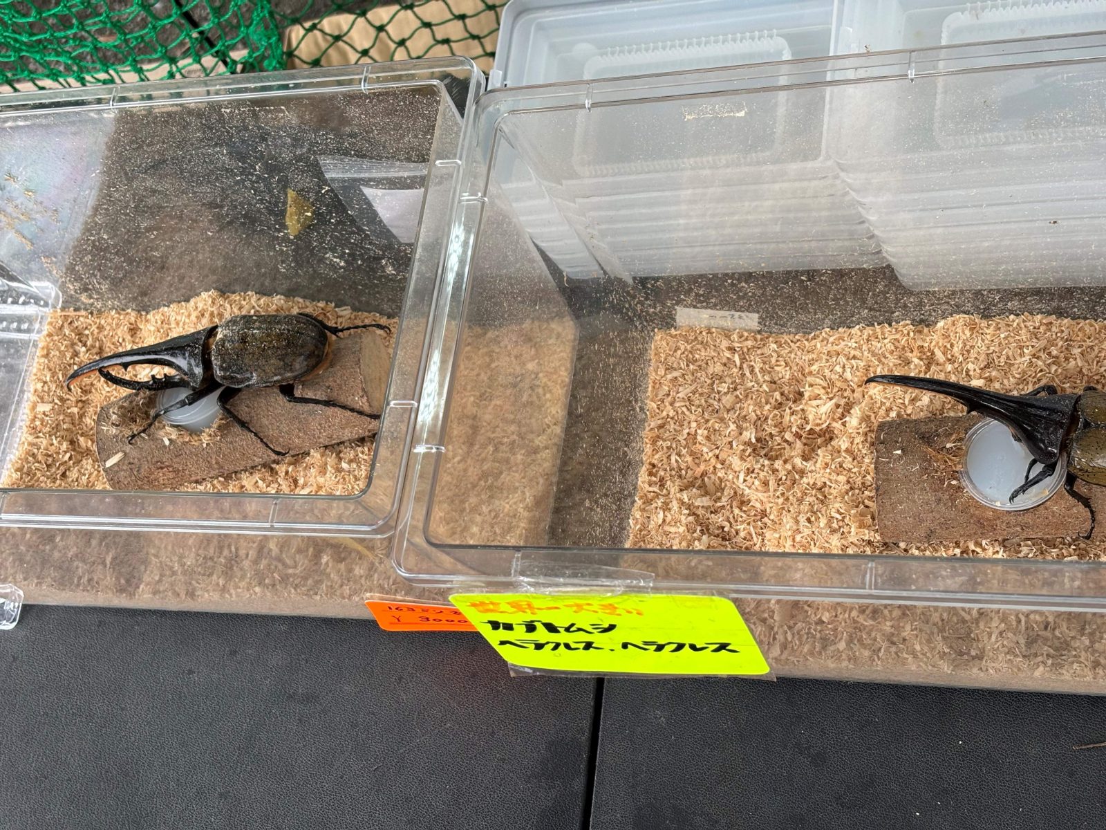 なかなか生きている実物を目にすることは少ないオオクワガタやヘラスレスカブトムシが売られていました。