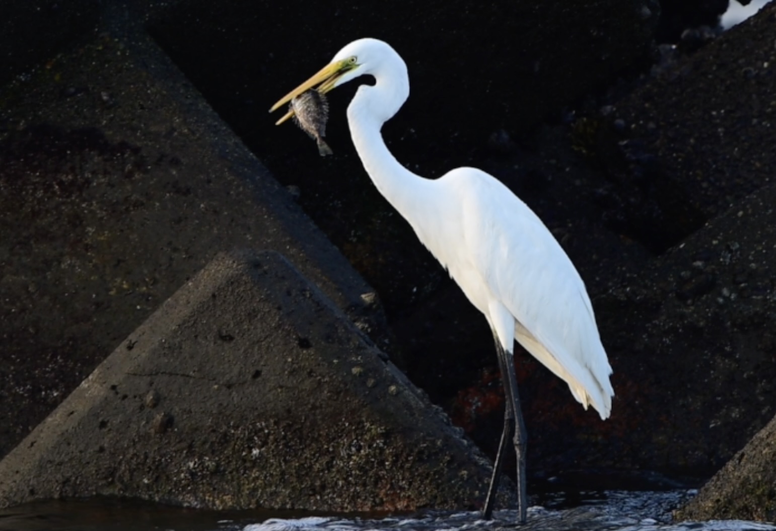 ある日、サギが波打ち際で獲物を狙っていました。てっきり小魚だと思って見ていたら、なんと口にくわえていたのはフグ。別の日にはエイ、そして背びれに毒棘を持つアイゴまで丸飲みしてしまいました。