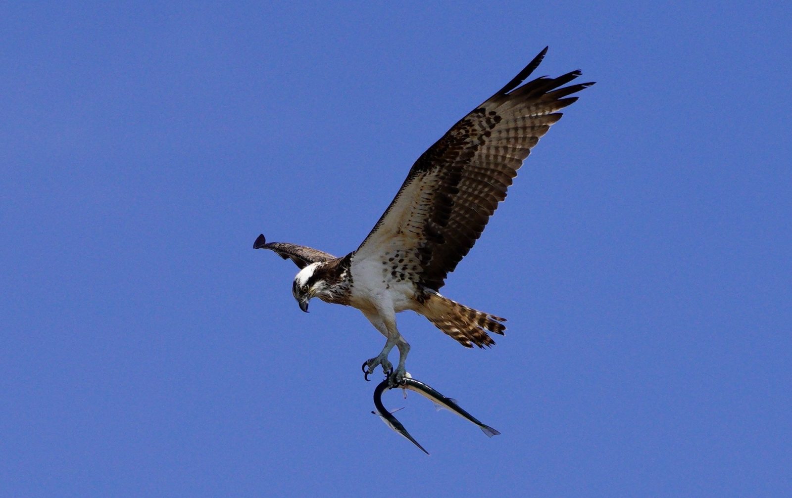 海面上をホバリングして、魚影を見つけた瞬間、翼をたたみ、一直線にダイブ。水柱が上がり、数秒後に大きな魚をつかんで浮上する姿は、何度見ても胸が震えます。獲物はダツ、スズキ、ボラ、イワシ、そして時には驚くような大物まで。